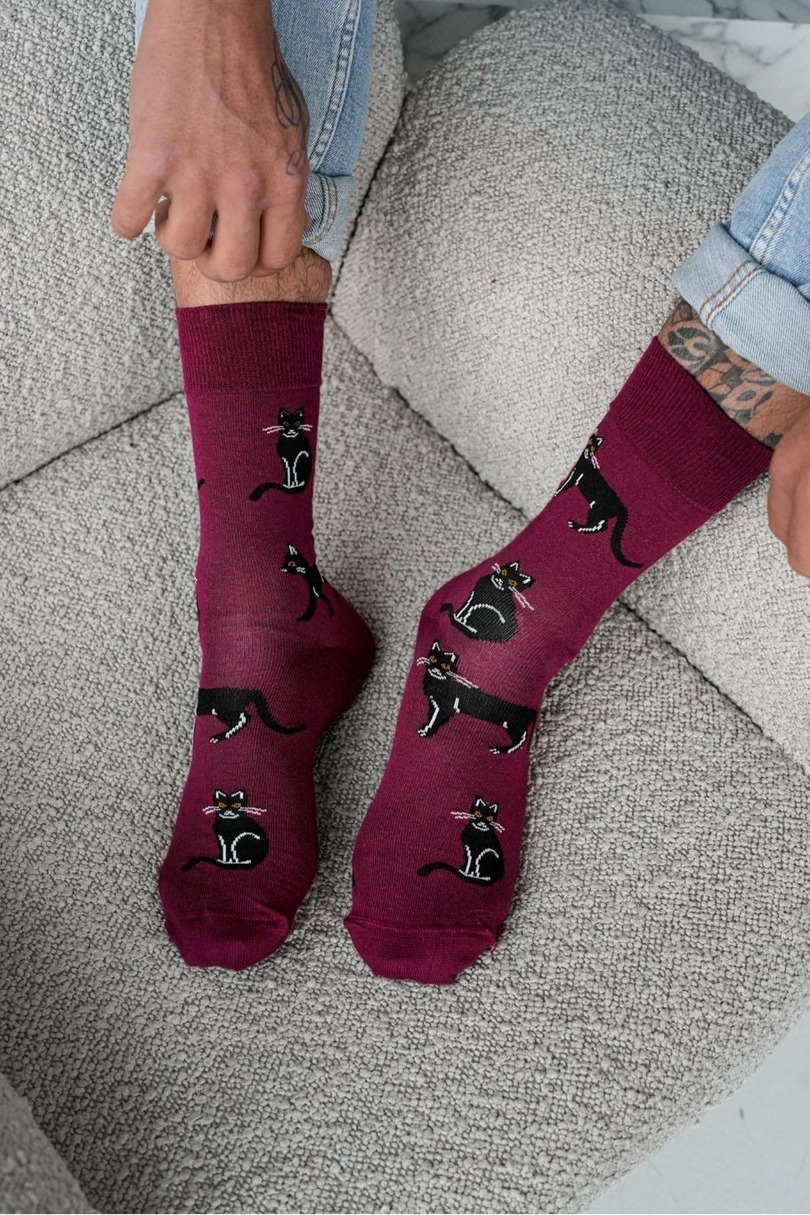 Ці чоловічі шкарпетки з котами 0125.034 – ідеальне поєднання комфорту та унікального стилю. Їхній дизайн з котячою тематикою надає їм гумористичного та сучасного вигляду, що ідеально підходить для любителів тварин та тих, хто цінує унікальні аксесуари. Високий вміст бавовни робить їх м’якими, дихаючими та зручними для цілоденного носіння. Додавання еластану забезпечує ідеальну посадку, а поліамід підвищує зносостійкість матеріалу. Вони ідеально підходять для щоденного носіння, роботи або як цінний подарунок.