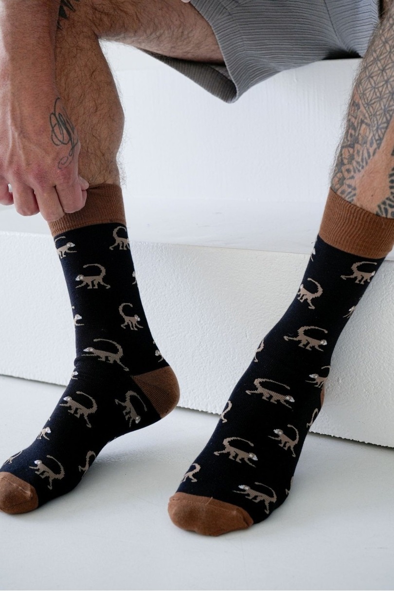 Чоловічі шкарпетки Monkey – ідеальний вибір для чоловіків з почуттям гумору та самодисципліною. Вони мають оригінальний, грайливий візерунок, який додасть характеру будь-якому вбранню. Виготовлені з високоякісної бавовни з додаванням поліаміду та еластану, вони гарантують м’якість, повітропроникність та ідеальну посадку. Вони ідеально підходять як для роботи, так і для відпочинку – будь-де, де важливі комфорт та стиль.