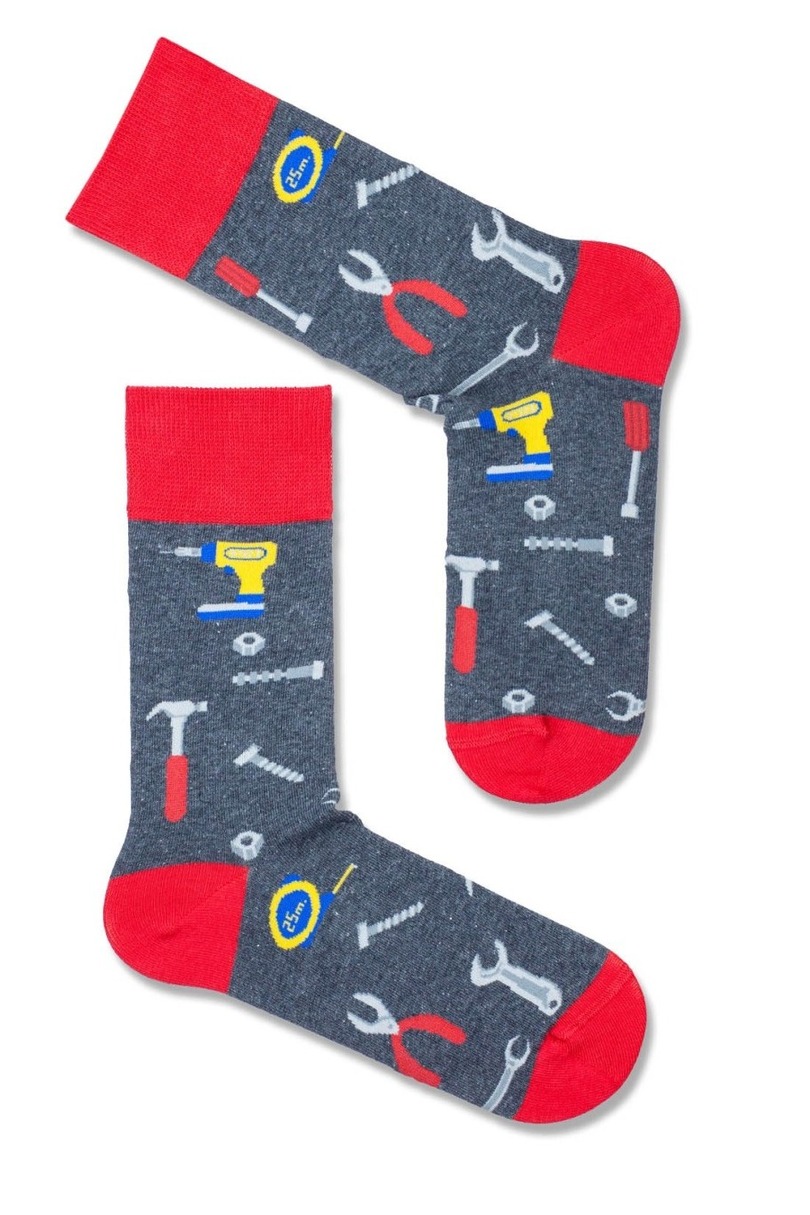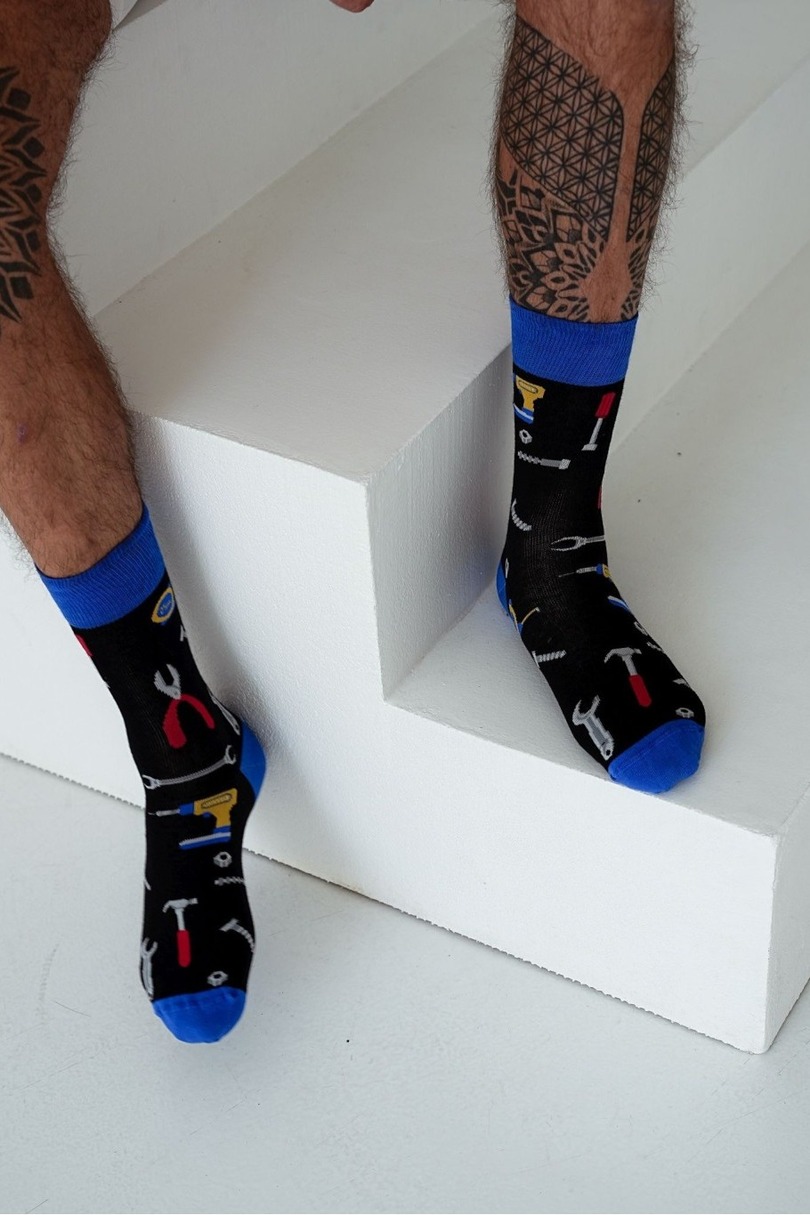 Чоловічі шкарпетки з інструментами 0125.089 – ідеальний вибір для чоловіків, які цінують практичний стиль та оригінальні аксесуари. Візерунковий мотив інструментів додає характеру та ідеально підкреслює інтереси, пов'язані з DIY, технологіями чи ручною працею. Високий вміст бавовни забезпечує комфорт, м'якість та гарну циркуляцію повітря, що робить ці шкарпетки придатними для цілоденного носіння. Додавання еластану забезпечує ідеальну посадку, а поліамід підвищує довговічність виробу. Ідеально підходять для щоденного носіння, роботи або як практичний подарунок.