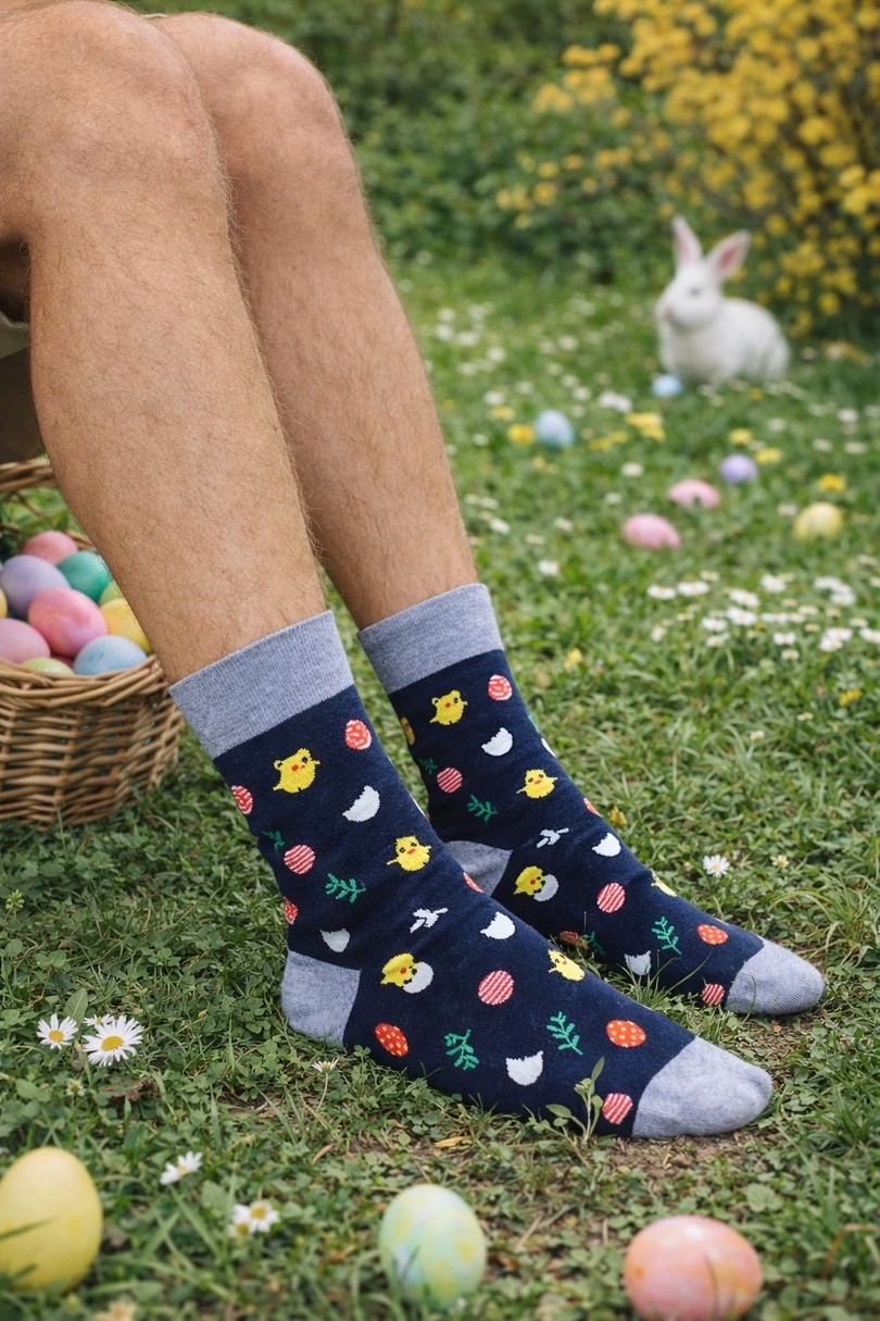 Чоловічі шкарпетки Milena's 0125.020 «Великдень» – це унікальний стиль, який привносить весняну та святкову атмосферу у повсякденні образи. Барвистий великодній візерунок з курчатами та яйцями надає цим шкарпеткам неповторного характеру та робить їх ідеальним аксесуаром для свят. Вони виготовлені з високоякісних матеріалів, серед яких переважає бавовна (75%), що забезпечує м'якість, повітропроникність та високий комфорт протягом усього дня. Поліамід (20%) підвищує міцність та стійкість до щоденного носіння, а еластан (5%) забезпечує еластичність та гарну посадку. Це гарантує, що шкарпетки щільно прилягають та зберігають свою форму навіть після численних прань. Великдень шкарпетки Milena's 0125.020 – ідеальний вибір для чоловіків, які люблять додати нотку стилю до свого одягу. Вони ідеально підходять для щоденного носіння та сімейних зустрічей. Вони також є оригінальною ідеєю для невеликого великоднього подарунка.