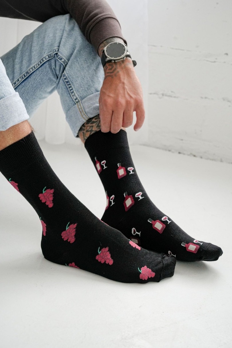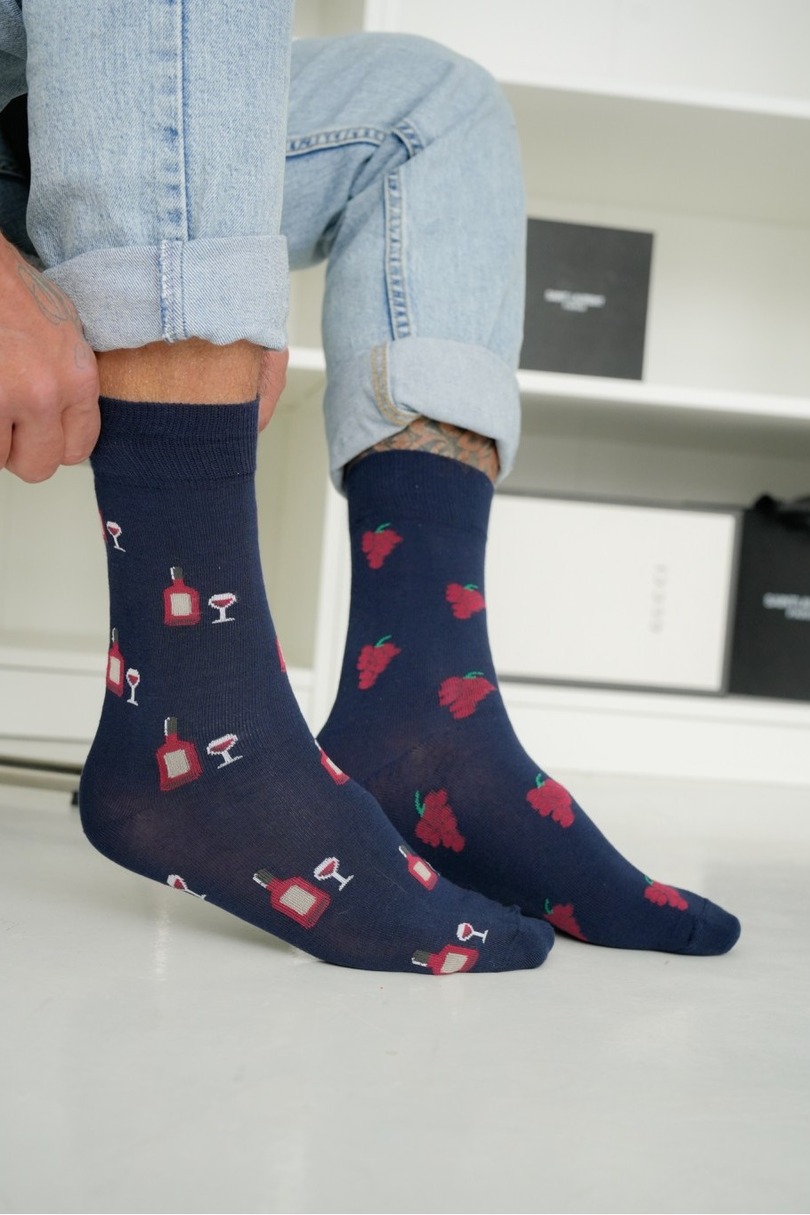 Чоловічі шкарпетки Milena's Wine (дві різні шкарпетки) 0125.137 – це унікальний варіант для чоловіків, які цінують стиль, гумор та комфорт. Цей комплект складається з двох різних шкарпеток, об'єднаних винним мотивом – виноград, пляшки та келихи створюють цілісний дизайнерський образ. Це модний акцент, який ідеально доповнює класичні та повсякденні образи. Високий вміст бавовни забезпечує комфорт, повітропроникність та м'якість, а еластан і поліамід забезпечують гнучкість, довговічність та ідеальну посадку. Ці шкарпетки ідеально підходять для щоденного носіння та стануть оригінальним подарунком для любителів вина.