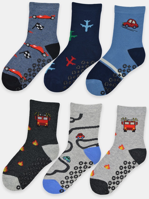Бавовняні дитячі шкарпетки з антиковзанням у стопі. Мікс візерунків і кольорів. Склад: 70% бавовна, 25% поліамід, 5% еластан.