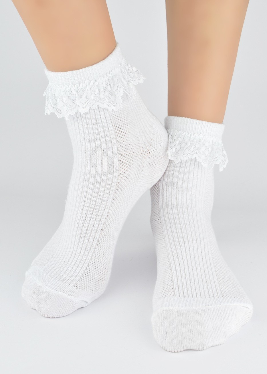 Ажурні шкарпетки для дівчаток з ніжної бавовни. Манжета, що не тисне, прикрашена мереживом. Склад: 72% бавовна, 25% поліамід, 3% еластан.