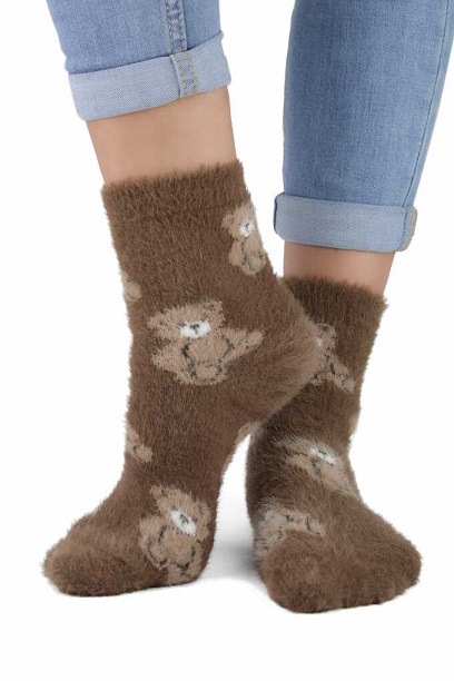 Шкарпетки для дівчинки із зображенням ведмедика виготовлені з м'якого трикотажу в поєднанні з пухнастою ниткою. Теплі та зручні, мають манжету, що не тисне. Змішані дизайни - надсилаються випадковим чином. Склад: 86% поліамід, 12% поліестер, 2% еластан.