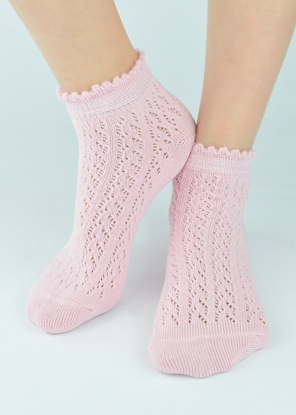 М'які бавовняні дитячі шкарпетки. З ефектним ажурним візерунком та плоскими швами. Зручні декоративні манжети. Склад: 75% бавовна, 22% поліамід.