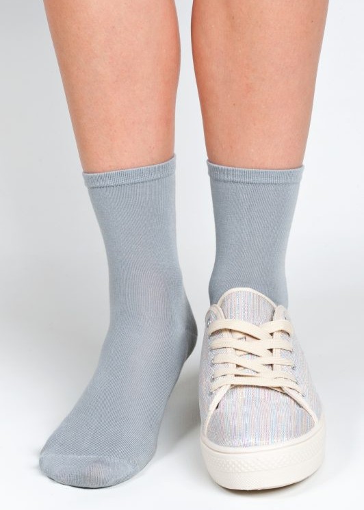 Надзвичайно м’які жіночі шкарпетки. Легкі, міцні, не мнуться, легко прати та швидко сохнуть. Мають високу здатність поглинати та відводити вологу. Склад: 76% бамбукова віскоза, 22% поліамід, 2% еластан.