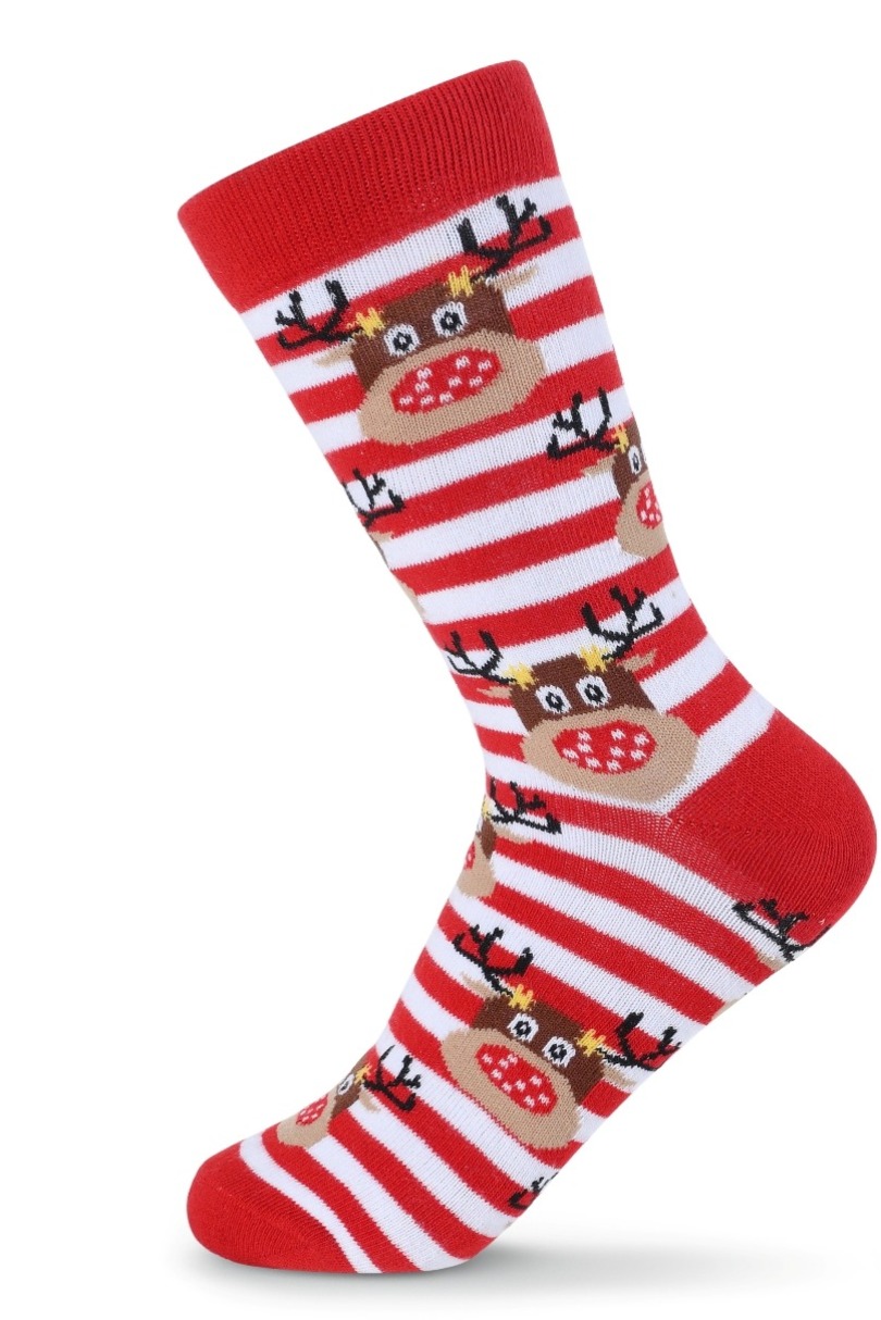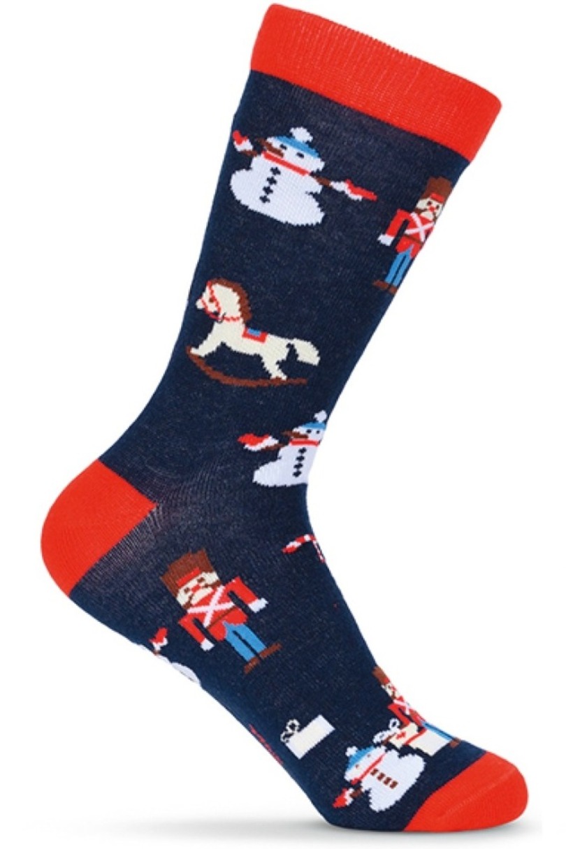 Бавовняні шкарпетки з візерунком та різноманітними святковими мотивами. Комфорт забезпечується контурною п'ятою та плоскими швами.
