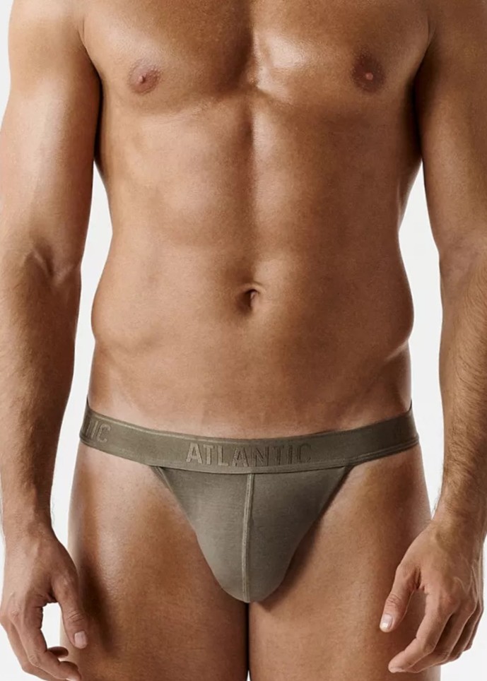 Ці труси-танга мають низьку талію та широкий еластичний пояс з тисненим логотипом Atlantic. Ці еластичні стрічки також утворюють боки трусів, забезпечуючи надійну посадку без тиску. Дві штуки в упаковці. Склад: 88% мікромодал, 12% еластан.