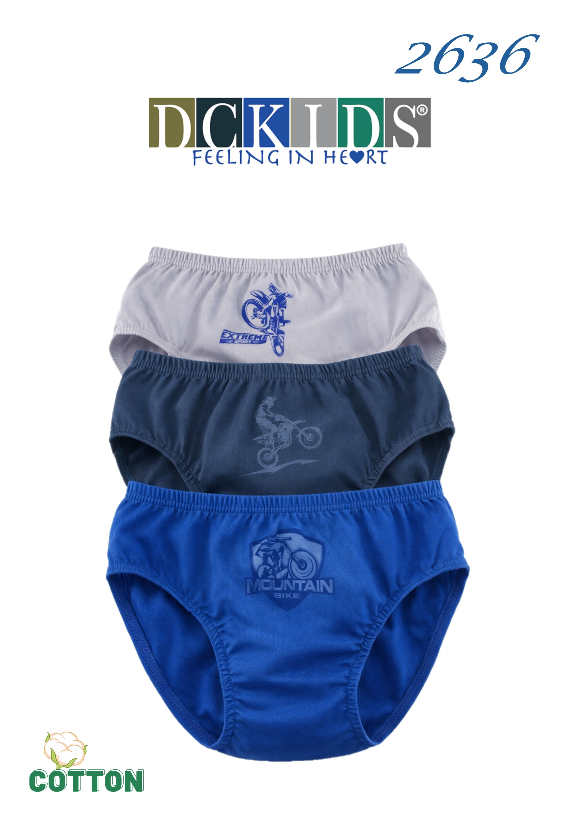 Дитячі труси з яскравим принтом. Виготовлені з м'якої 100% бавовни. Доступні в упаковках по три штуки в широкій кольоровій гамі.
