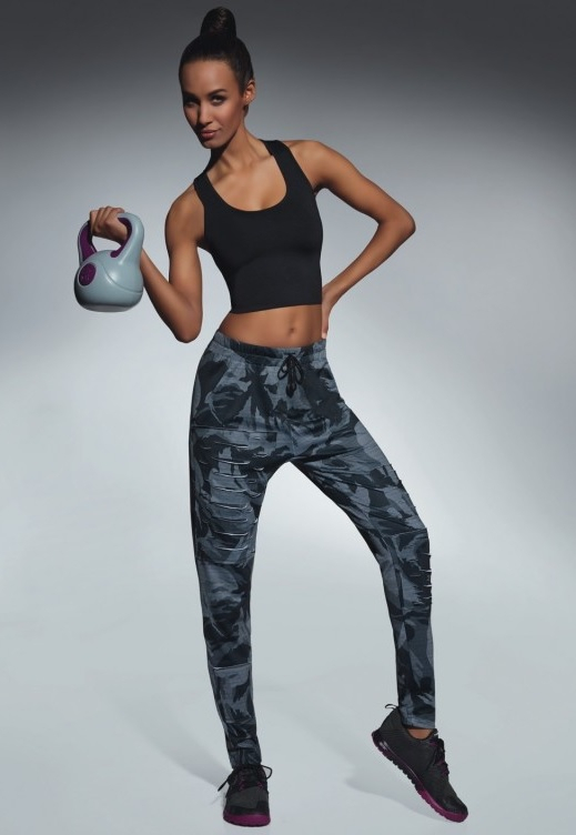 Штани для активних жінок зі злегка опущеною промежиною. Кишені спереду і ззаду. Зручна, широка гумка на талії та зав'язки. Декоративні прорізи дозволяють шкірі дихати і відводять вологу. Товщина 200 DEN. Склад: 85% поліестер, 1