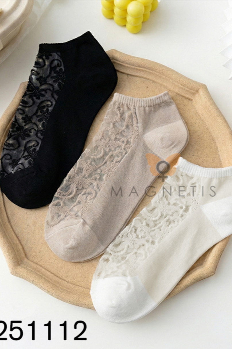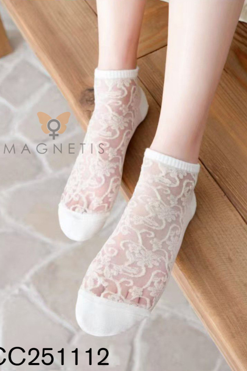 Жіночі шкарпетки до щиколотки Magnetis CC-251112 з аплікацією – це елегантна та чуттєва модель з прозорою структурою та яскравим квітковим візерунком. Ніжна сітка в поєднанні з декоративною чорною вишивкою створює унікальний дизайн, який ідеально підкреслює жіночний стиль. Ці візерунчасті шкарпетки до щиколотки ідеально підходять для балеток, лоферів та взуття, коли ви хочете поєднати комфорт з модним штрихом. Модель виготовлена з комбінації бавовни (50%) та поліестеру (45%), що забезпечує комфорт та довговічність. Додавання еластану (5%) забезпечує еластичність та ідеальну посадку. Шкарпетки до щиколотки добре тримаються, не ковзають та зберігають форму навіть після багаторазового прання. Прозора частина з декоративним візерунком додає легкості та елегантності будь-якому стилю. Шкарпетки до щиколотки Magnetis CC-251112 – чудовий вибір для жінок, які цінують стильні деталі, високу якість виготовлення та комфорт для щоденного використання.