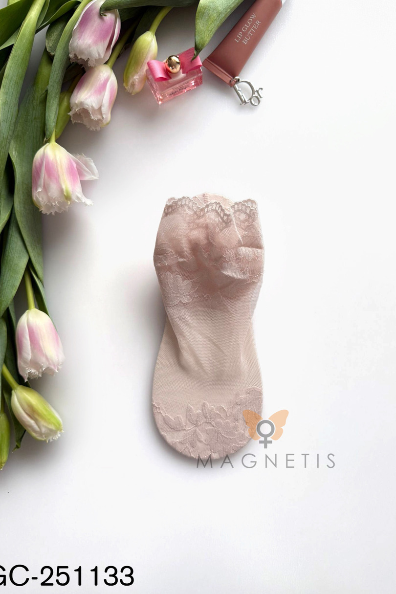 Елегантні жіночі шкарпетки до щиколотки MAGNETIS GC-251133 – це ідеальне поєднання витонченості, комфорту та жіночного стилю. Їхня прозора структура та ніжний квітковий візерунок надають їм унікального характеру. Декоративна мереживна обробка на щиколотці додає елегантності та робить їх ідеальним доповненням до легкого взуття – балеток, лоферів або весняно-літнього взуття. Завдяки ретельному виготовленню шкарпетки легкі, повітряні та дуже приємні в носінні. Високий вміст бавовни (95%) забезпечує комфорт та хорошу повітропроникність, а 5% еластану гарантує еластичність та ідеальну посадку. Шкарпетки до щиколотки тримаються на місці та забезпечують комфорт протягом усього дня. Модель MAGNETIS GC-251133 – чудовий вибір для жінок, які цінують елегантні деталі та комфорт у повсякденному стилі.