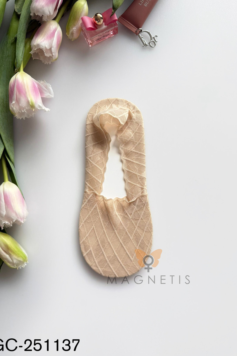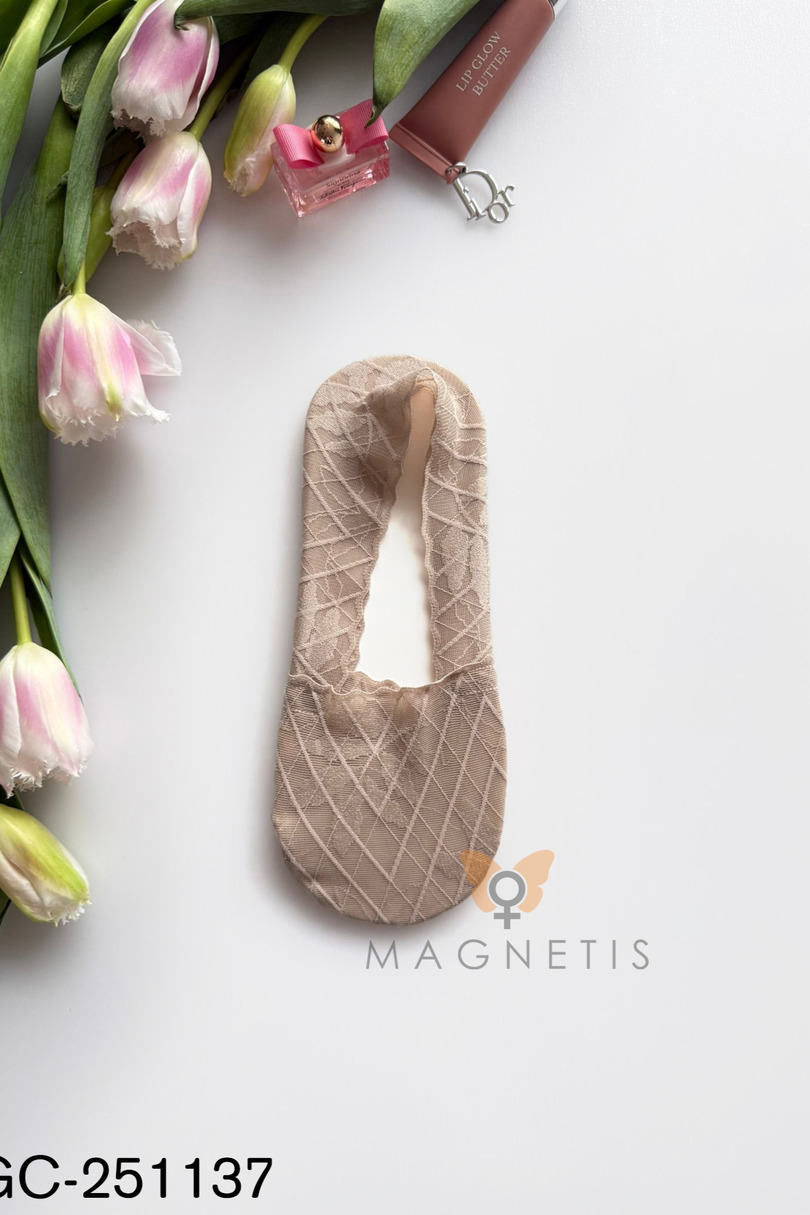 Стильні жіночі шкарпетки до щиколотки MAGNETIS GC-251137 – це елегантний варіант для жінок, які шукають непомітні, але виключно жіночні шкарпетки для щоденного носіння. Розроблені так, щоб бути непомітними під взуттям, вони ідеально поєднуються з балетками, мокасинами, лоферами або низькими кросівками. Ніжний мереживний візерунок у геометричному квітковому мотиві додає елегантності. Прозора структура матеріалу надає шкарпеткам легкості та стильного вигляду, а еластичне покриття допомагає утримувати їх на місці під час ходьби. Високий вміст бавовни (95%) забезпечує комфорт, м'якість та хорошу повітропроникність. Додавання еластану (5%) забезпечує еластичність та ідеальну посадку, гарантуючи, що шкарпетки збережуть свою форму навіть після численних прань. Шкарпетки до щиколотки MAGNETIS GC-251137 – це ідеальне поєднання елегантності та функціональності, ідеально підходять як для повсякденного стилю, так і для більш елегантного взуття.