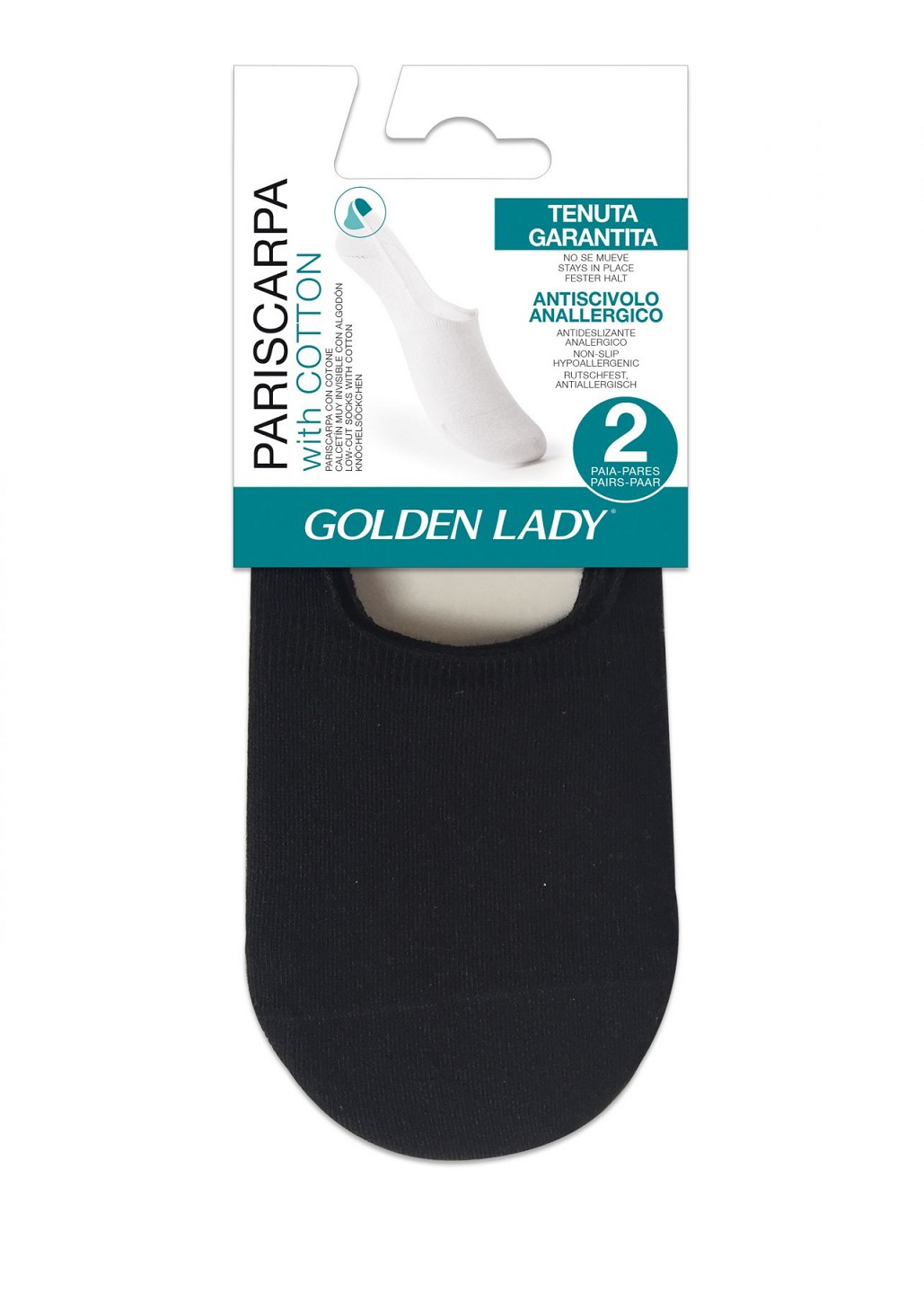 Лапки з ніжної та приємної на дотик бавовняної тканини. Зручні краї без тиску. Ідеально підходить для спортивного взуття. Силікон на п'яті запобігає зісковзуванню з ноги. Упаковані дві пари. Склад: 78% бавовна, 19% поліамід, 3% еластан.