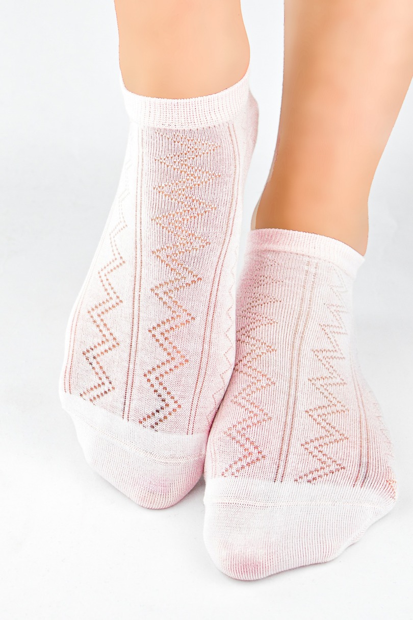 Жіночі шкарпетки з високоякісної пряжі з некомпресивним манжетом. Надзвичайно м'які та приємні на дотик, оздоблені ніжним візерунком. Ідеально адаптуються до стопи. Склад: 64% віскоза, 16% поліамід, 16% бавовна, 4% еластан.