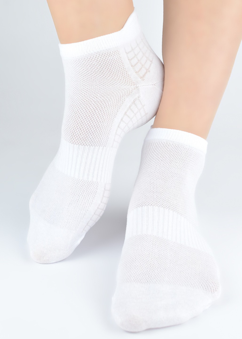 Ці спортивні шкарпетки до щиколотки мають шнурок у середині стопи, що запобігає ковзанню. Вони мають вентиляційні зони, упор для п'яти з "язичком" та контурну форму п'яти. Вони дуже гнучкі та приємні на дотик. Склад: 77% бавовна, 20% поліамід, 3% еластан.