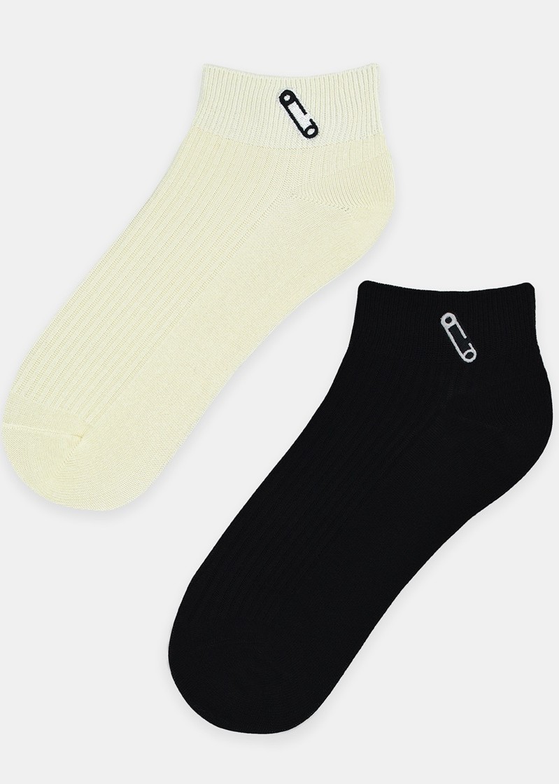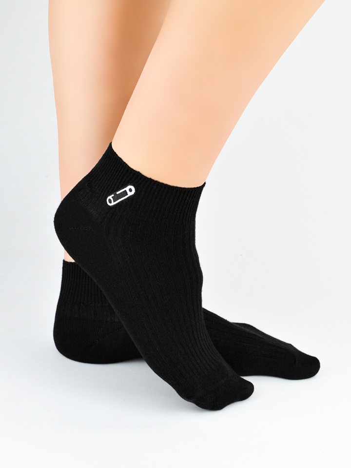 Зручні жіночі бавовняні шкарпетки. Вони ідеально облягають ногу, забезпечуючи комфорт, та прикрашені ніжним вишитим візерунком у вигляді шпильки. Кольори у випадковому порядку. Склад: 75% бавовна, 22% поліестер, 3% еластан.