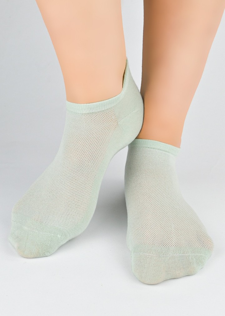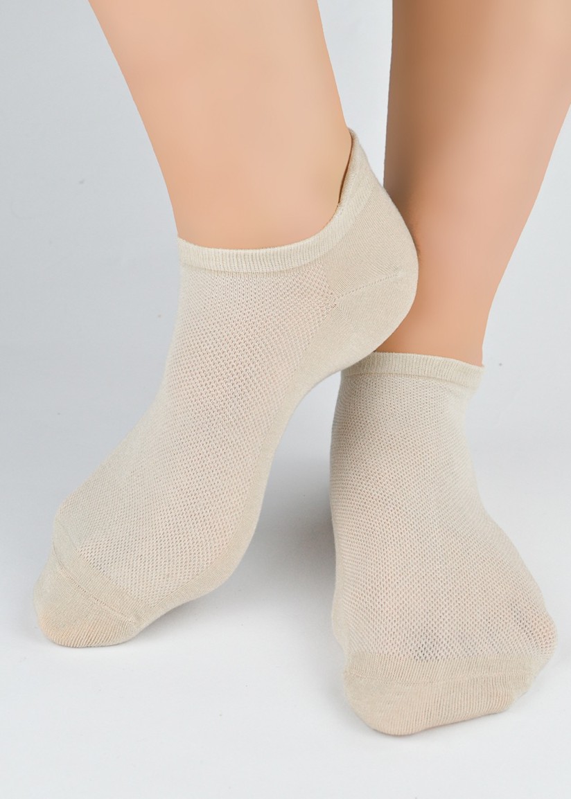 Зручні, однотонні жіночі шкарпетки з м'якого, приємного для шкіри модалу. Легкі та повітряні, вони мають еластичний пояс, що не стискає талії. Кольори розташовані у випадковому порядку. Склад: 72% модал, 25% поліамід, 3% еластан.