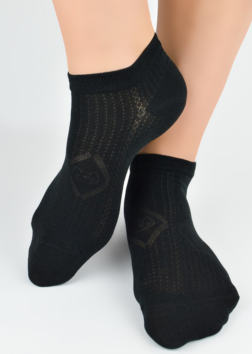 Жіночі шкарпетки з високоякісної пряжі з некомпресивним манжетом. Надзвичайно м'які та приємні на дотик, оздоблені ніжним візерунком. Ідеально адаптуються до стопи. Склад: 64% віскоза, 16% поліамід, 16% бавовна, 4% еластан.