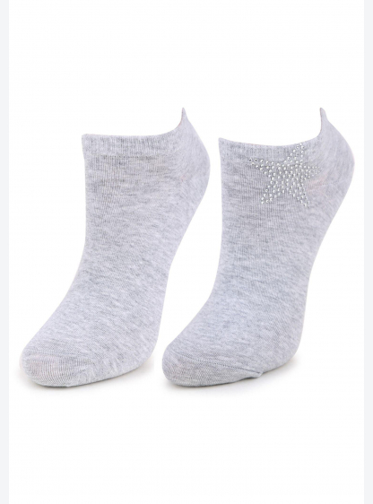 Низькі гладкі жіночі шкарпетки, прикрашені з боків цирконовою зіркою. Виготовлена з натуральної баво..