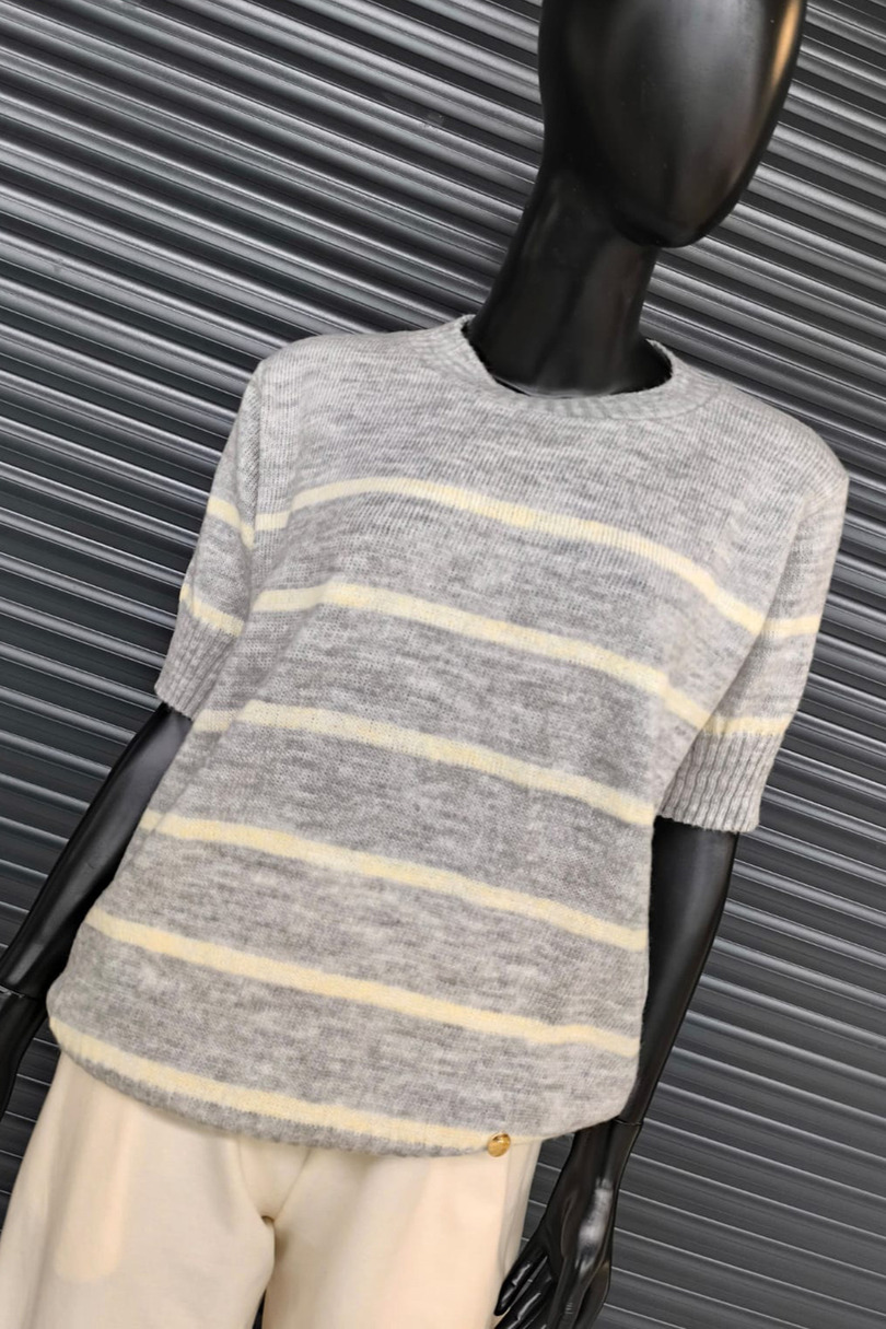 Цей стильний жіночий светр у смужку поєднує в собі позачасовий класичний стиль із сучасним, розслабленим відчуттям. Вільний, зручний крій забезпечує свободу рухів та комфорт протягом дня, а короткі рукави роблять його ідеальним для перехідних сезонів. Класичний візерунок у горизонтальну смужку надає йому елегантного характеру, який ніколи не виходить з моди. Ніжна ребриста окантовка на вирізі горловини та подолу делікатно формує силует та підкреслює жіночні пропорції. Завдяки ретельно підібраній суміші акрилу, вовни та поліаміду, светр м'який, приємний на дотик та стійкий до зміни форми. Він ідеально поєднується з джинсами, елегантними тканинними штанами та спідницею, створюючи повсякденні, міські та напівофіційні образи.