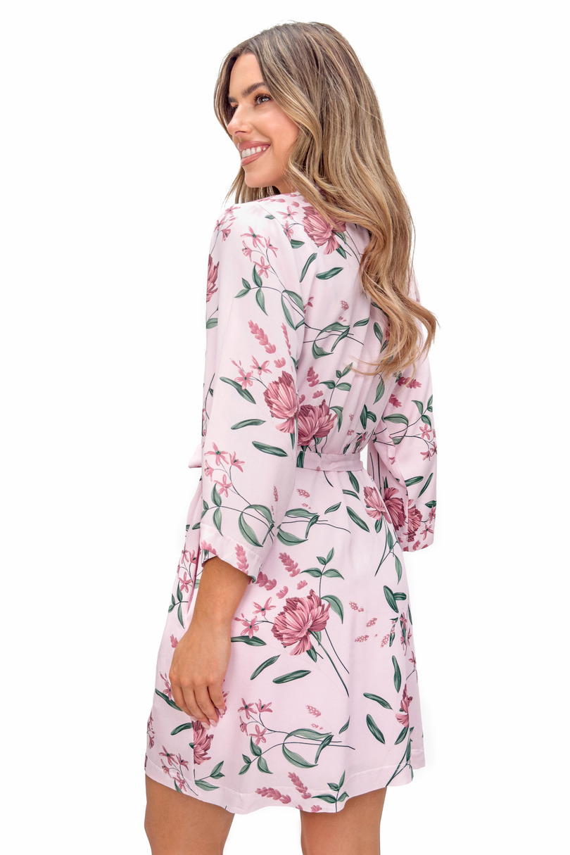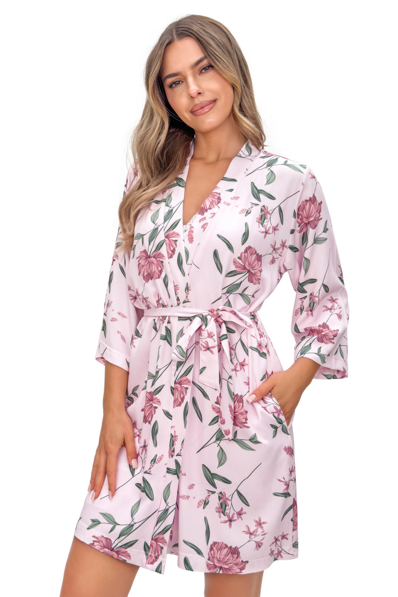 Жіночий халат Gabriela від Donna – це елегантний та неймовірно жіночний варіант для тих, хто цінує комфорт та стиль. Виготовлений з високоякісної віскози з додаванням еластану, він забезпечує м'якість, повітропроникність та ідеальну посадку. Пояс ніжно підкреслює талію, гарантуючи комфорт. Ніжний квітковий візерунок надає халату романтичного відтінку, а практичні кишені підвищують його функціональність. Його легкий дизайн робить його ідеальним як для ранкового носіння, так і для вечірнього відпочинку. Це ідеальний вибір для жінок, які цінують елегантний одяг для дому та високу якість виготовлення.