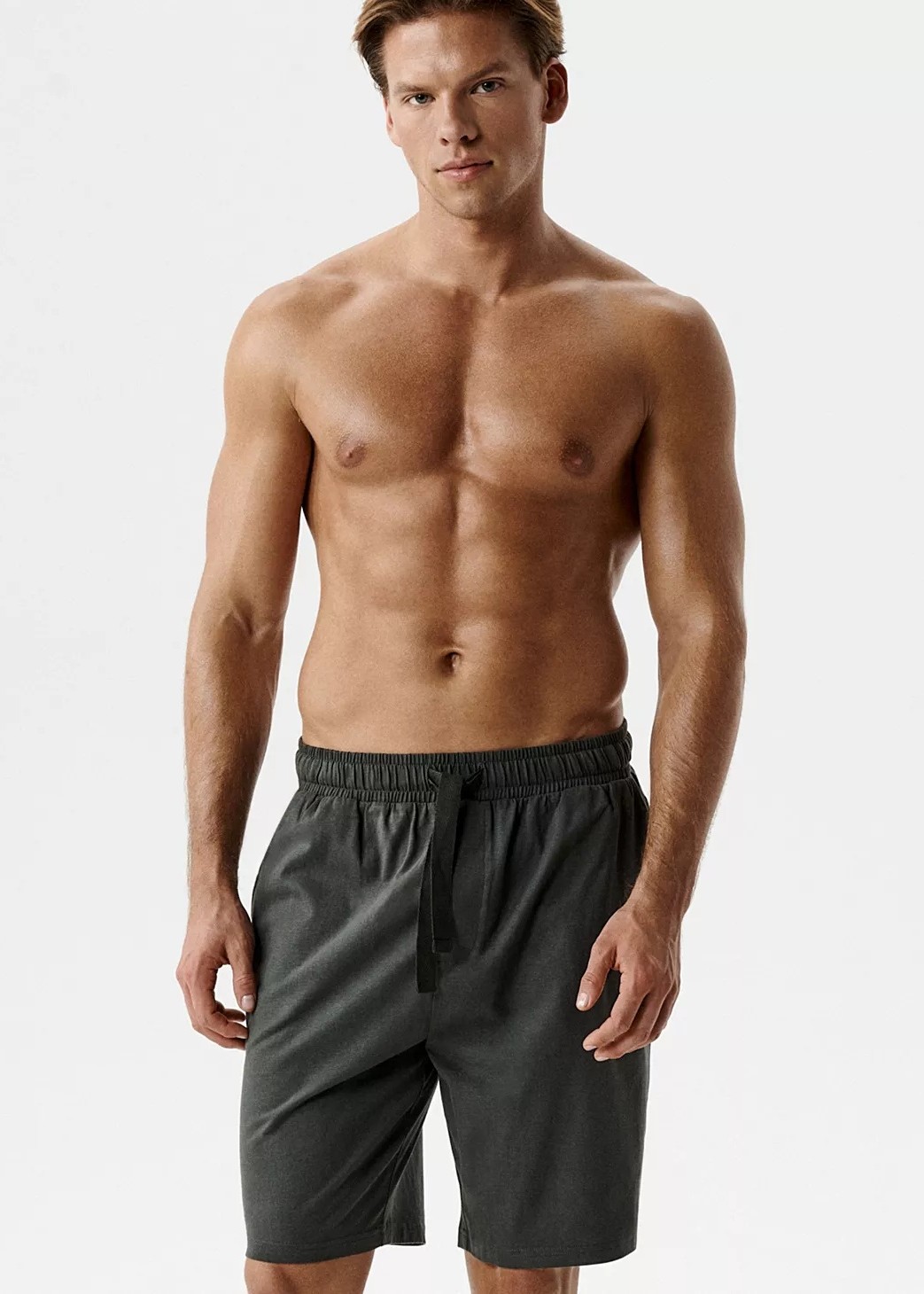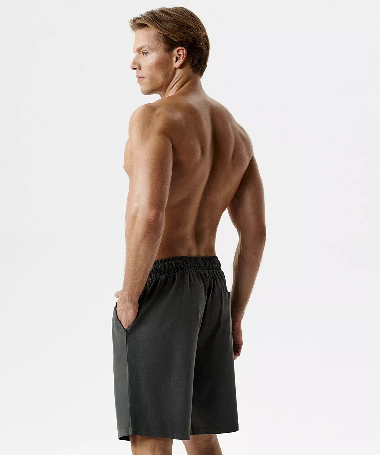 Чоловічі шорти з високоякісної бавовни з персиковим ефектом — м’які, легкі та приємні для шкіри. Вільний прямий крій, еластичний пояс з регульованим шнурком та практичні бічні кишені забезпечують високий комфорт. Склад: 100% бавовна.