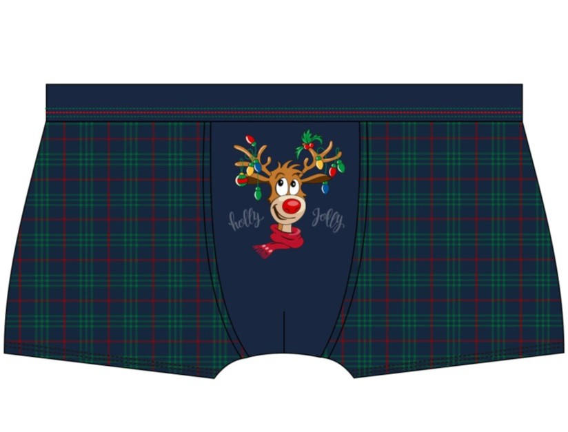 Чоловічі шорти з високоякісної бавовни прикрашені різдвяним принтом. Упакована в подарункову коробку, ідеально підходить для подарунка. Склад: 95% бавовна, 5% еластан.