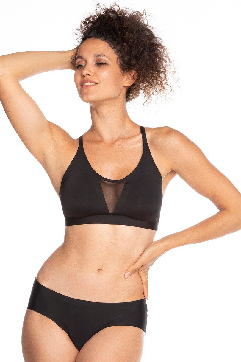 Жіночий бюстгальтер виготовлений з високоякісної, м'якої, дихаючої тканини. Вирізаний лазером з ультратонкою обробкою країв. Легко підкладені чашечки, без кісточок. Застібка на один гачок ззаду в трьох положеннях. Регульовані бретельки перехрещуються ззаду. Склад: 85% поліамід, 15% еластан.