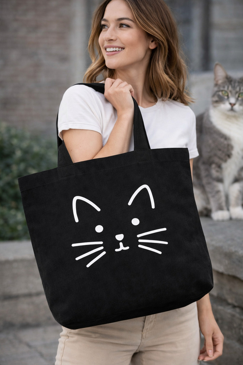 Ця бавовняна сумка для покупок з принтом котячого малюнка – стильний та практичний аксесуар для щоденного використання. Виготовлена з високоякісної бавовни, сумка міцна, екологічна та багаторазова, що робить її чудовою альтернативою одноразовим пакетам для покупок. Чарівний принт котячого малюнка спереду надає їй унікального характеру та робить її ідеальним доповненням до модного міського образу. Просторий внутрішній простір дозволяє зручно носити покупки, книги чи інші необхідні речі. Завдяки довгим, міцним ручкам сумку можна зручно носити як у руці, так і через плече. Це ідеальний вибір для любителів котів та тих, хто цінує практичні та екологічні рішення. Ширина: 38 см, висота: 40 см.