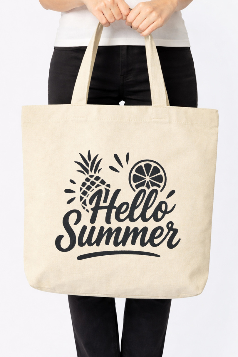 Ця бавовняна сумка для відпустки з модним літнім мотивом – практичний та стильний аксесуар для щоденного використання. Виготовлена з міцної натуральної бавовни, вона ідеально підходить для шопінгу, подорожей, прогулянок чи відпустки. Її велика місткість дозволяє зручно носити з собою всі необхідні речі, а літній принт надає сумці унікального, життєрадісного характеру. Це ідеальний вибір для тих, хто цінує функціональність, екологічні рішення та модний вигляд. Ширина: 38 см, висота: 40 см.