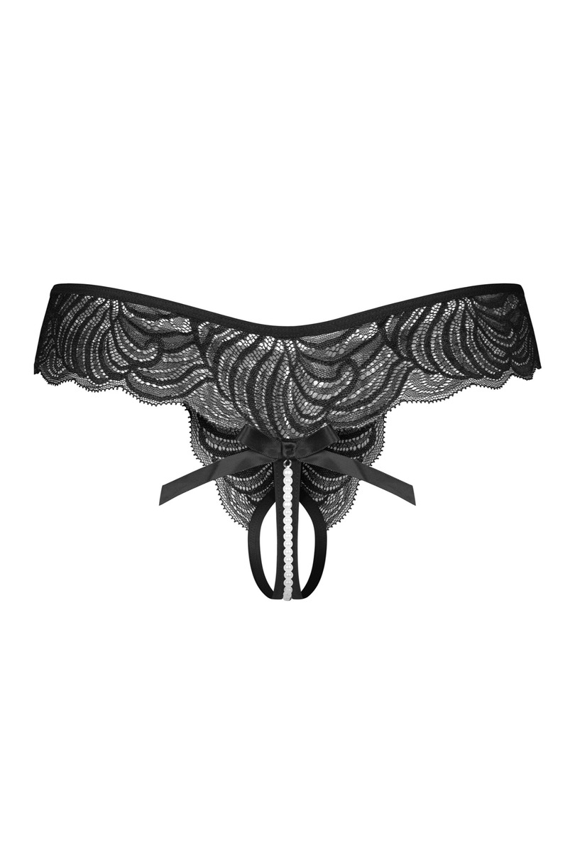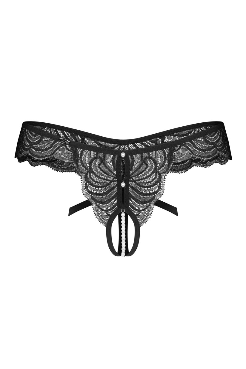 Стрінги Trinise – це надзвичайно чуттєвий виріб, що поєднує витонченість мережива зі сміливим, відкритим кроєм. Витончений візерунок ніжно підкреслює стегна, неймовірно жіночно демонструючи силует. Відкритий дизайн спереду та ззаду надає білизні провокаційного характеру, створюючи ідеальну обстановку для особливих моментів. Центральним елементом моделі є перловий ланцюжок, який привертає погляд і додає розкішного, схожого на коштовність, акценту до загального дизайну. Декоративний бант завершує дизайн, додаючи нотку романтики та легкості. Ця білизна створена для жінок, які люблять поєднувати елегантність зі сміливою чуттєвістю.