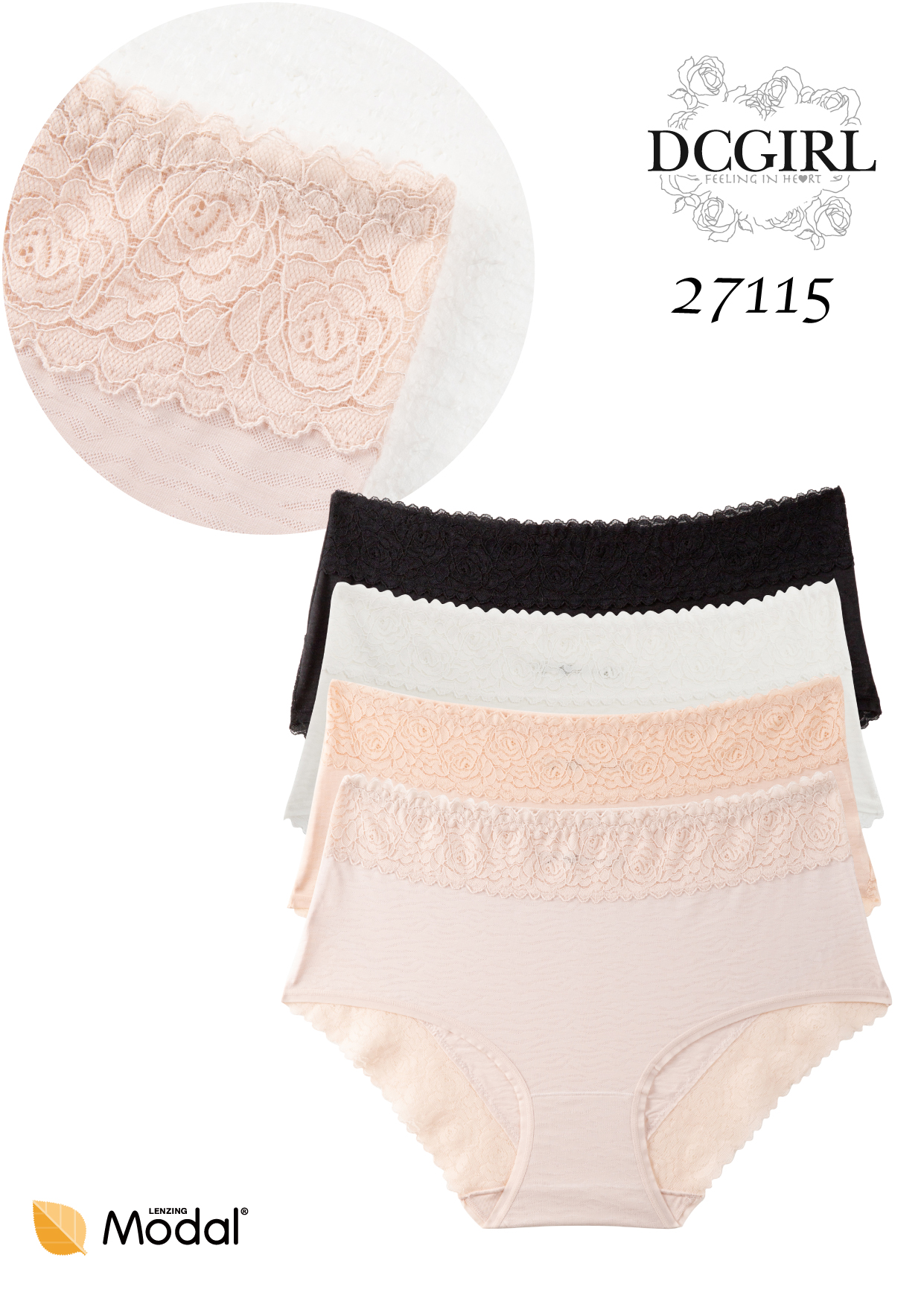 Жіночі однотонні труси з мереживним поясом, виготовлені з м'якого мікромодалу. Упаковка з 12 штук різних розмірів (M, L, XL) та кольорів. Склад: 89,5% мікромодал, 10,5% еластан.