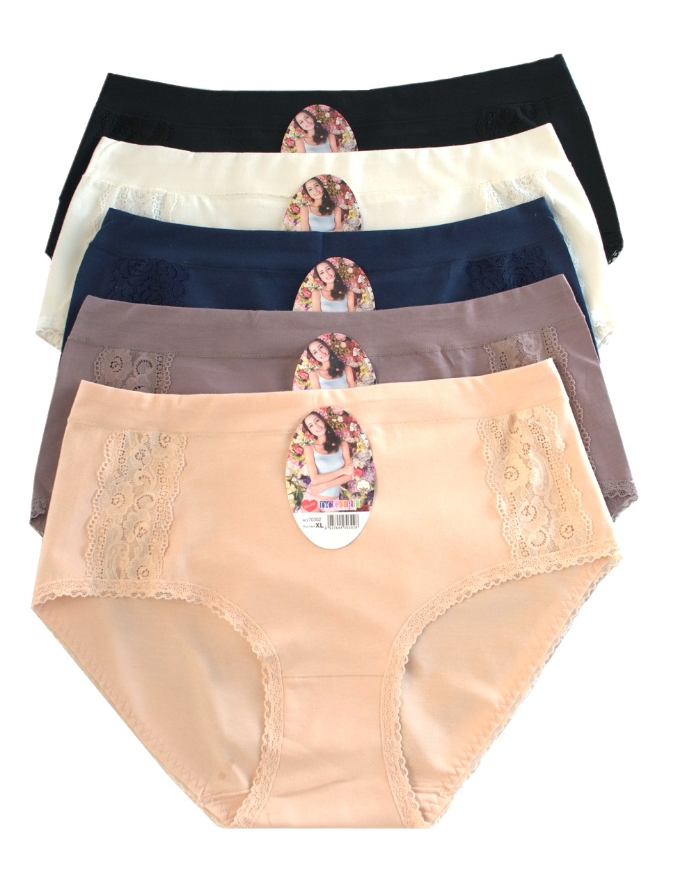 Жіночі труси, виготовлені з високоякісної бавовни. Ідеально сидять. 12 штук в упаковці. Різні розміри в упаковці (XL, XXL, 3XL). Склад: 95% бавовна, 5% еластан.