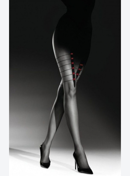 Жіночі колготки на 20 ден з декоративним малюнком на стегні. Вони мають плоский шов, невелику ластов..
