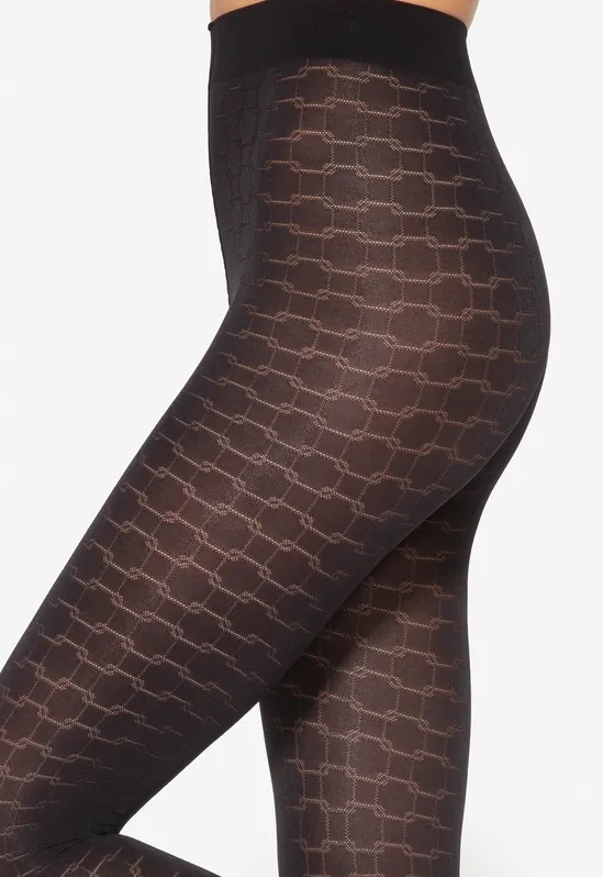 Колготки з малюнком з винятковою м’якістю з мікрофібри, матові, без помітної частини трусиків з невеликою ластовицею, 50 DEN, з геометричним малюнком. Склад: 90% поліамід, 10% спандекс.