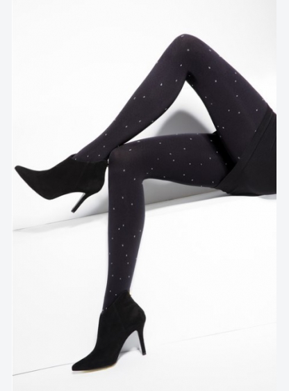 Жіночі непрозорі, матові колготки з крапками, вишиті срібною ниткою. Площа трусиків та посилений діл..