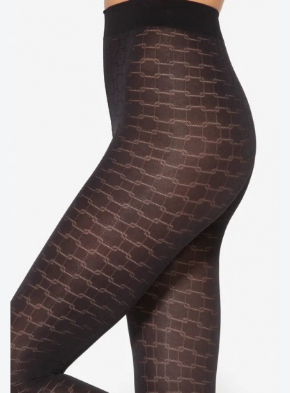 Жіночі колготки з малюнком з мікрофібри в технології 3D. Візерунок утворений з’єднаними діамантами п..