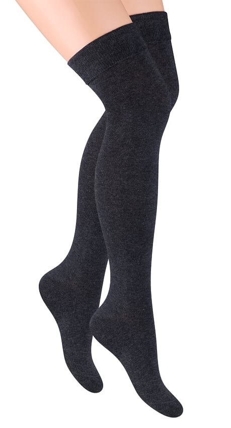 Довгі жіночі шкарпетки вище коліна з бавовни найвищої якості. Доступний у різних колірних варіантах. Склад: 70% бавовна, 27% поліамід, 3% еластан.
