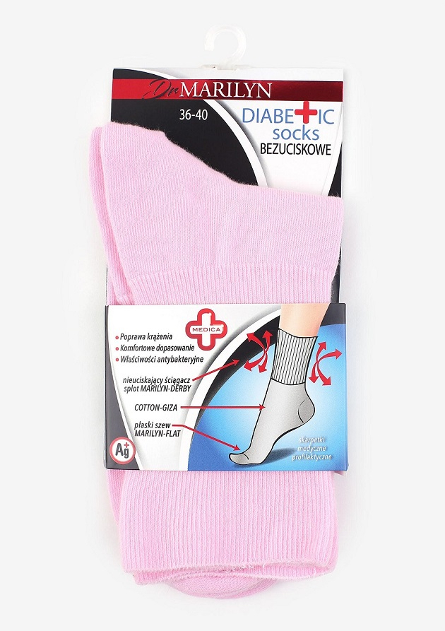 Профілактичні шкарпетки без тиску, виготовлені з бавовни найвищої якості, чудово регулюють температуру ніг – влітку вони залишаються прохолодними, а взимку – теплими. Вони мають антибактеріальні та протигрибкові властивості. Склад: 80% бавовна, 10% поліамід, 10% еластан