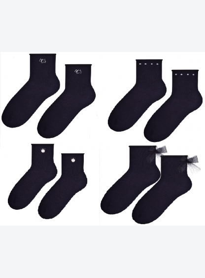 Жіночі шкарпетки з м’якого гладкого бавовни. Верх прикрашений крихітним фіанітом, бантиками або перл..