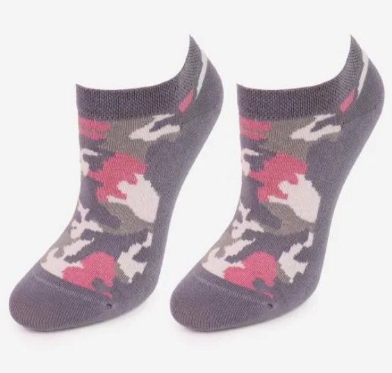 Жіночі шкарпетки з камуфляжним малюнком, виготовлені з найякіснішої бавовни та оброблені зручним м’яким швом. Склад: 80% бавовна, 15% поліамід, 5% еластан.