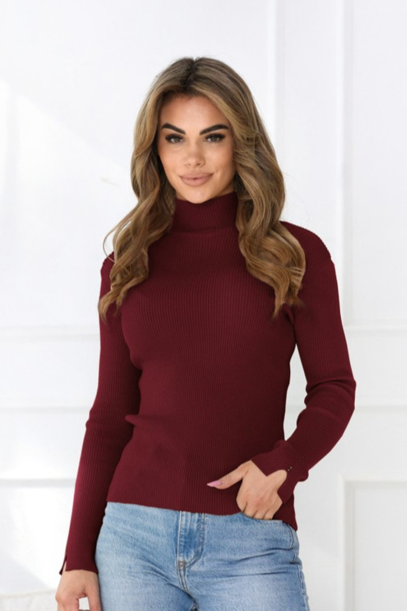 Трикотажна блуза з ніжними вертикальними смугами, які додають елегантності та делікатно формують фігуру. Він має напівводолазку, яка ідеально прилягає до шиї, додаючи стилю тепла та елегантності. Рукава довгі, а на манжетах є декоративні щілини з дрібними перлами, які надають блузі сучасний характер і трохи оригінальності. Блуза виготовлена з надзвичайно м'якої та приємної на дотик пряжі, що забезпечує максимальний комфорт при носінні. Завдяки використанню якісної пряжі, водолазка ідеально прилягає до тіла, не створюючи дискомфорту. Це відмінний вибір для людей, які цінують стиль і комфорт.